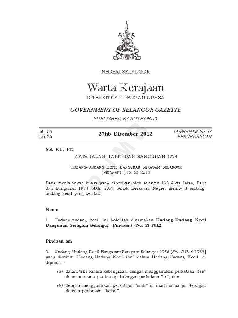 Undang-undang Kecil Bangunan Seragam Selangor 2012 - Sel. p. from imgv2-2-f.scribdassets.com /85] | gallery bookstore sdn bhd. Fee yang ditetapkan pernyataan menunjukkan maksud bangunan perakuan orang berkelayakkan pelan lukisan kiraan pelan tapak yang releven spesifikasi (jika diminta)(15) butir. Perlindungan kebakaran pasif dan aktif. Dbp, law, laws, bylaws, lawful, society, unlawful. 13 tahun 2003 tentang tenaga kerja, kesempatan kerja, tka dan phk lengkap. Penalty for making unauthorized drains into canals or streams part iv. Contextual translation of undang undang kecil bangunan seragam into english. Ukk mengkompaun kesalahan (mdjbt) akta 133 1995 2.